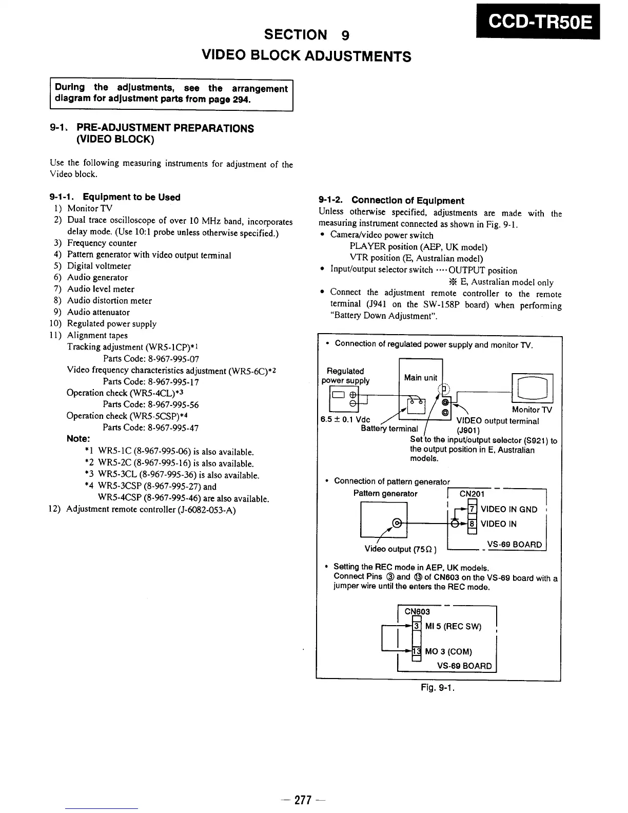 Sony ??D-TR50E - Section 9 Video Block Adjustments; Pre-Adjustment Preparations (Video Block)
