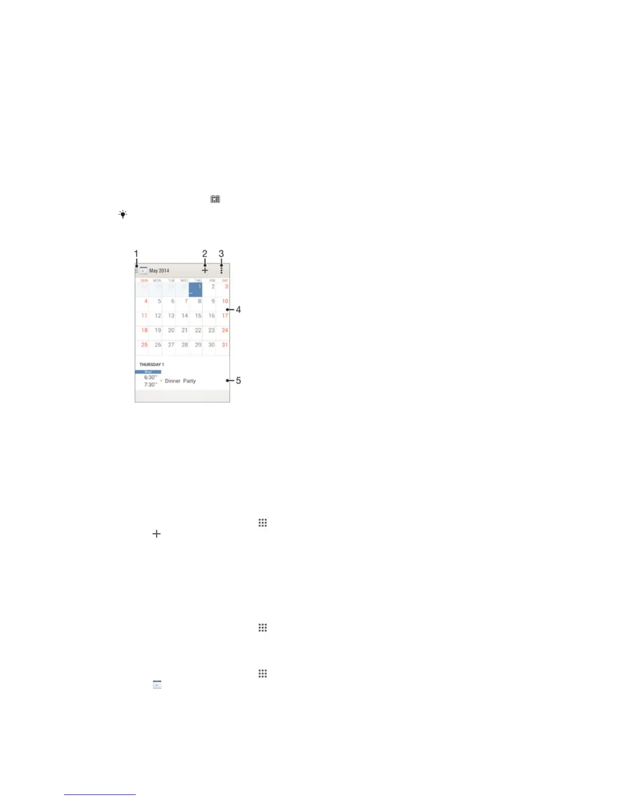 calendars, for example, your Google™ account or Xperia™ with Facebook account,