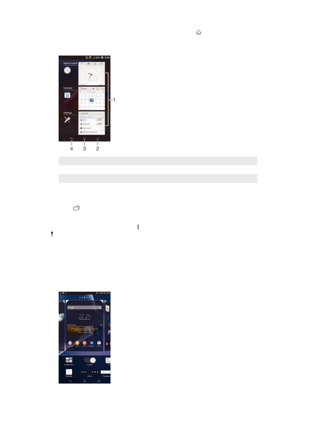 2 Task navigation key – Open the recently used applications window