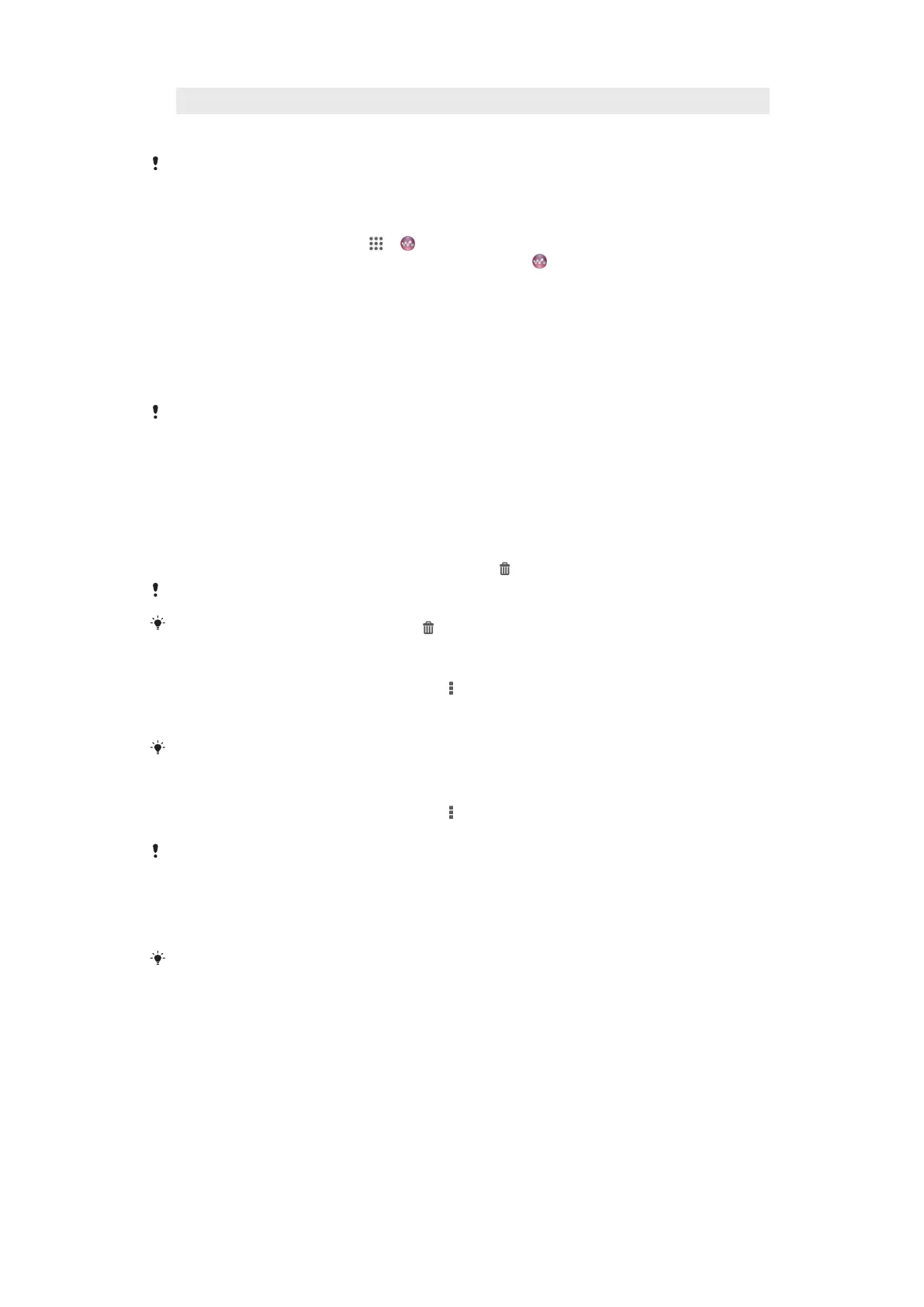 1 Open the WALKMAN home screen, then browse to the song you want to delete.