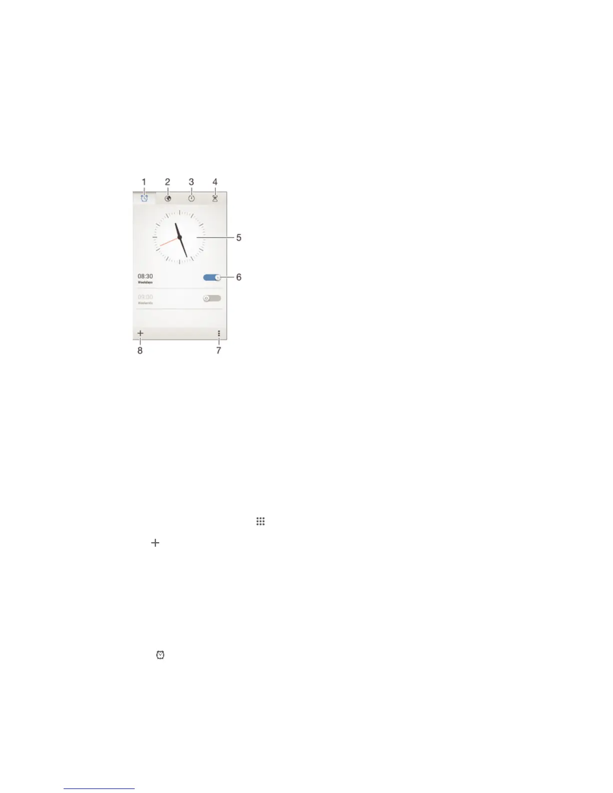 You can set one or several alarms and use any sound saved on your device as the