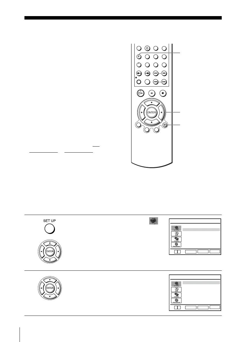 Press SET UP, then press V/v to select