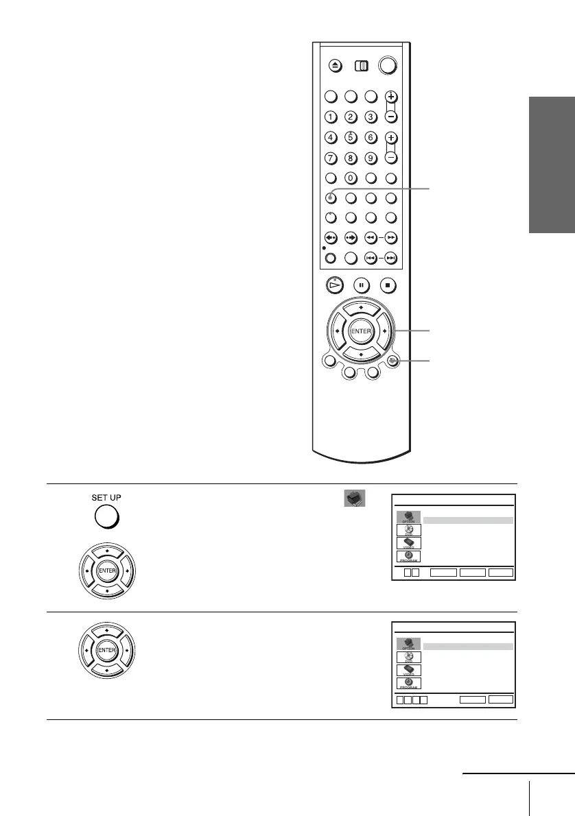 Press SET UP, then press V/v to select