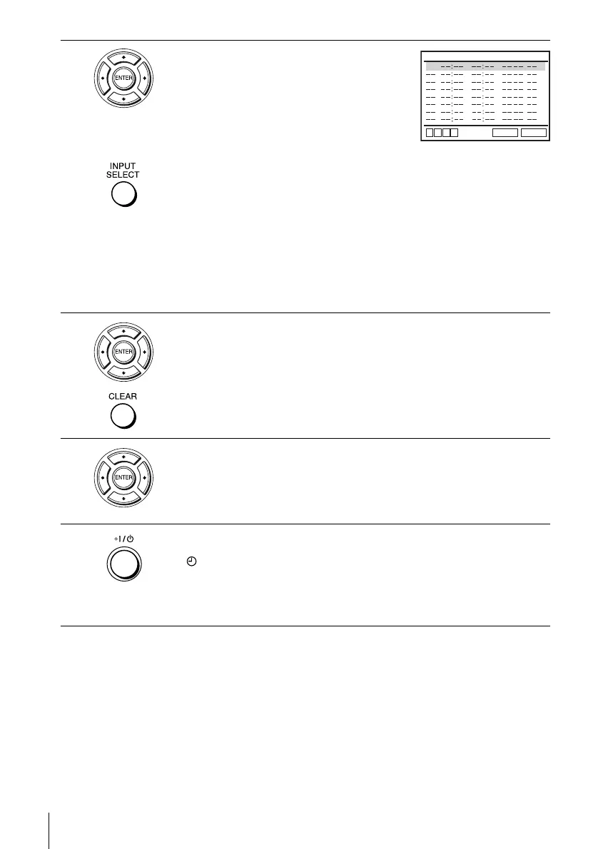 To enter another setting, press V/v to select the next row and repeat step 2.