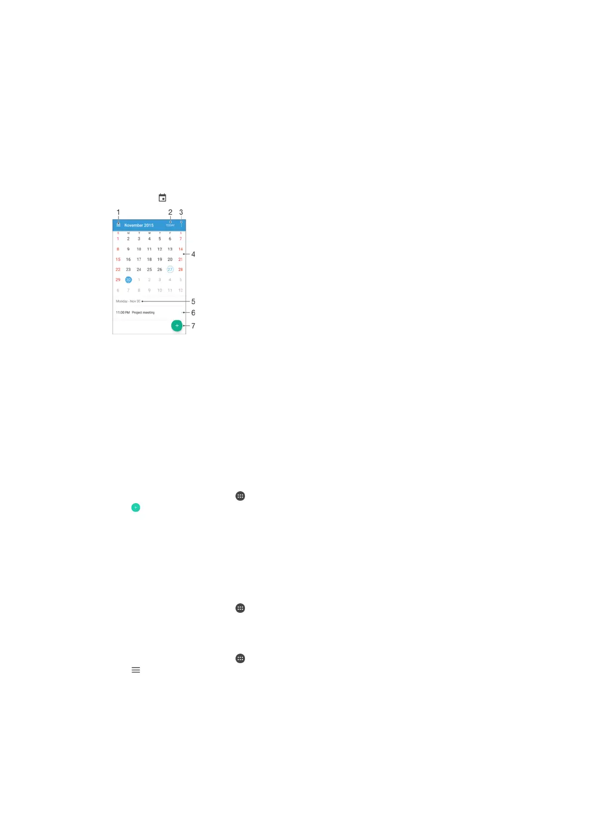 example, your Google™ account or Xperia™ with Facebook account, then calendar