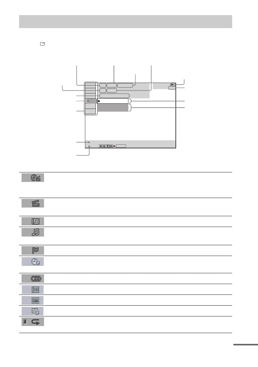 AUDIO (DVD only) (page 46) Changes the audio setting.