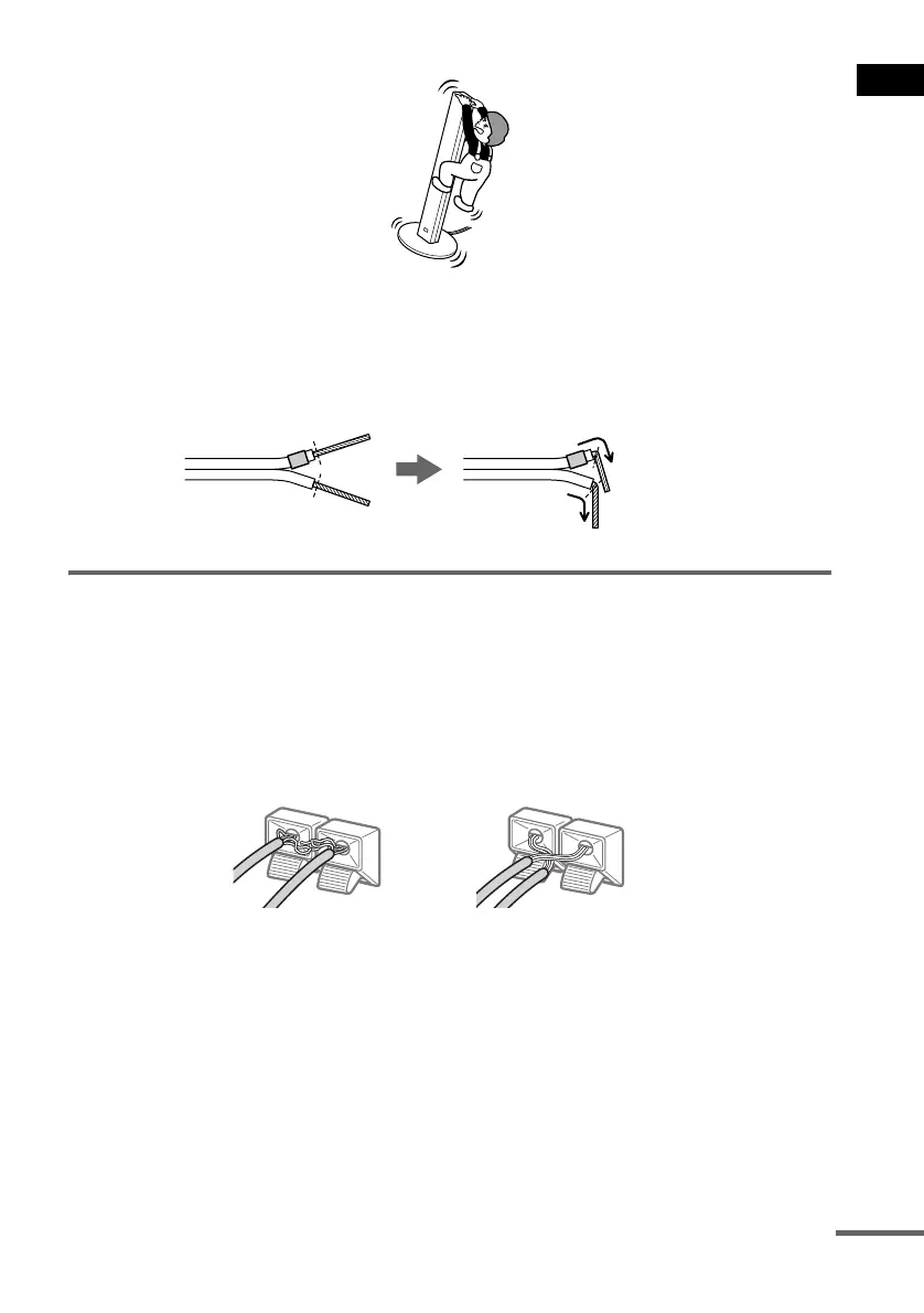 precautions when connecting the speakers. Make sure the bare wire of each speaker cord does not touch