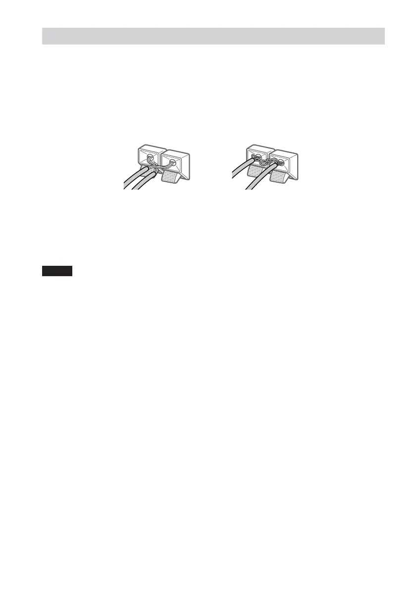 precautions when connecting the speakers. Make sure the bare wire of each speaker cord does