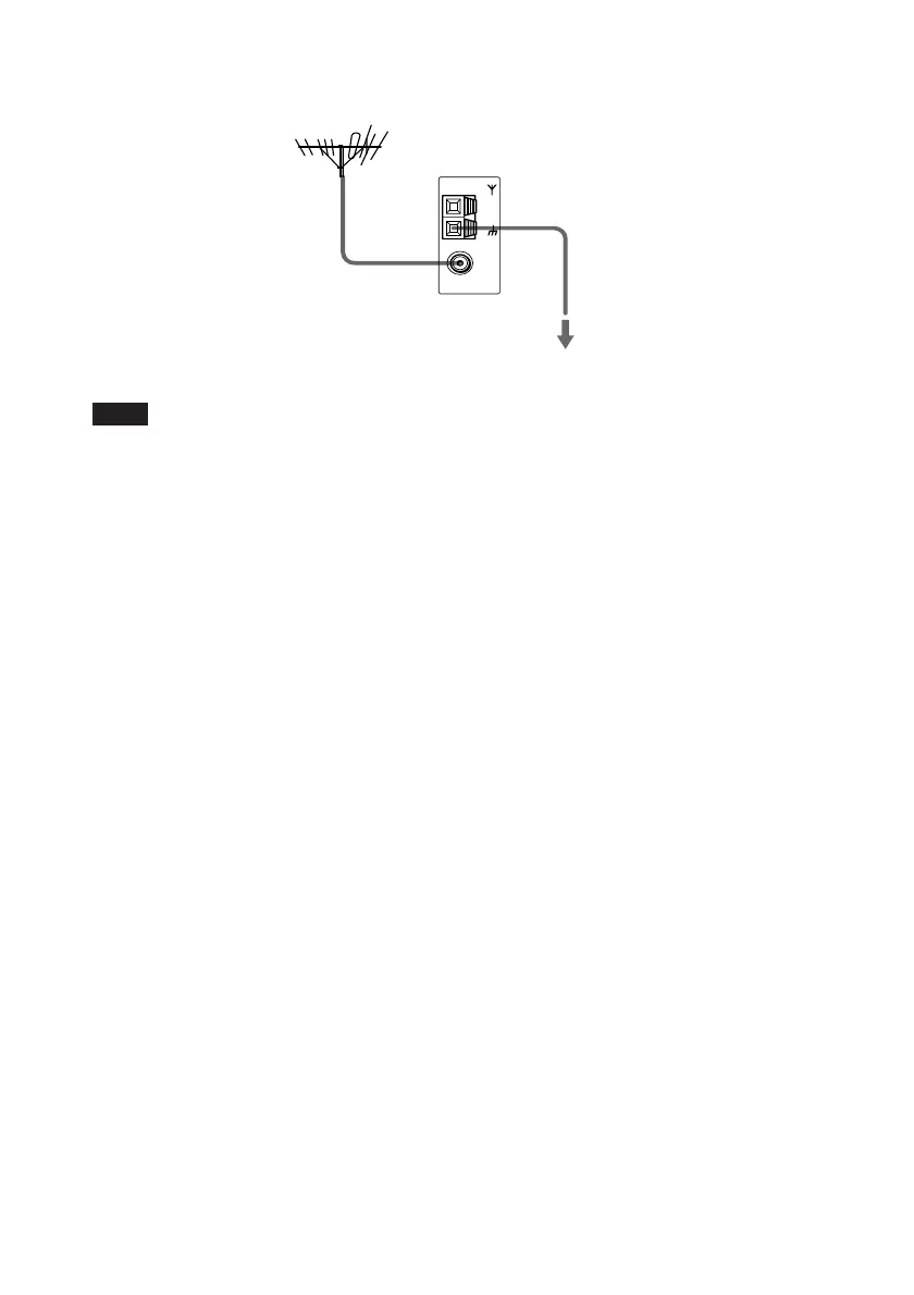 Use a 75-ohms coaxial cable (not supplied) to connect the system to an outdoor FM antenna as shown below.