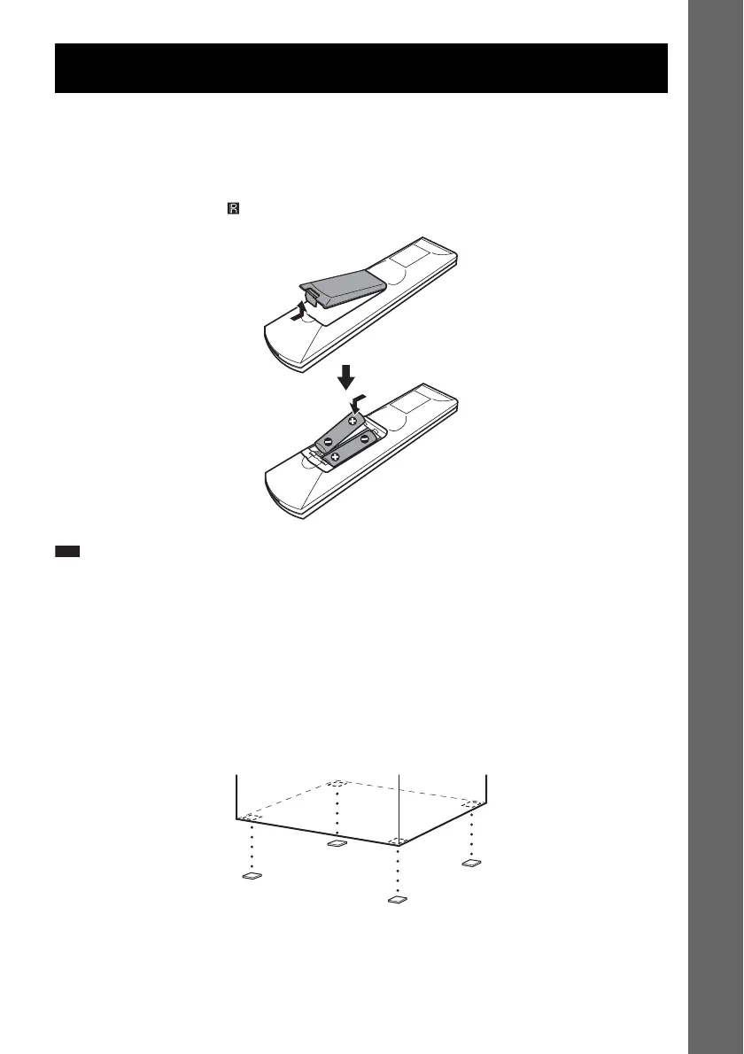 You can control the system using the supplied remote. Insert two R6 (size AA) batteries by matching