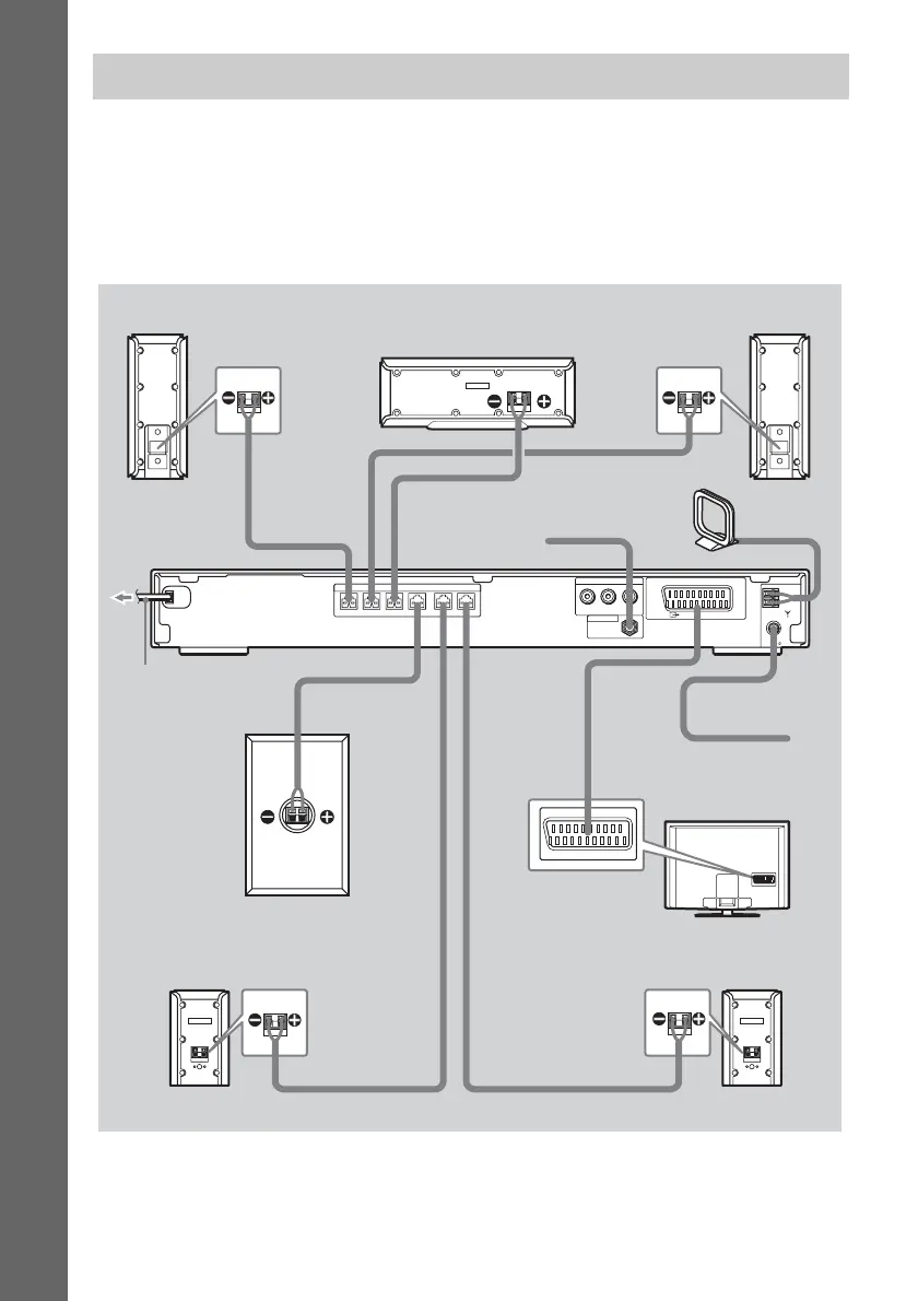 This hookup is the basic connection of the system to the speakers and TV. For other TV connections,