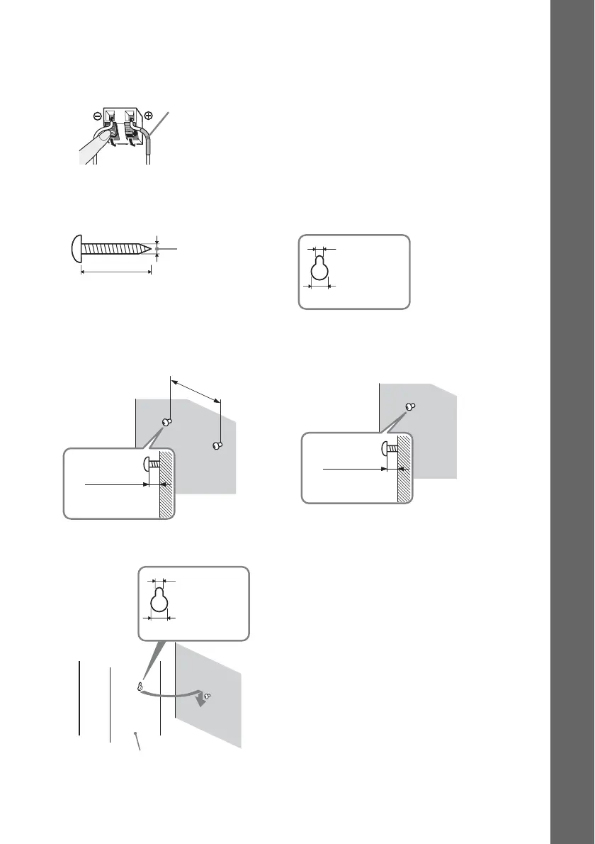 1 Prepare screws (not supplied) that are suitable for the hole on the back of each speaker.