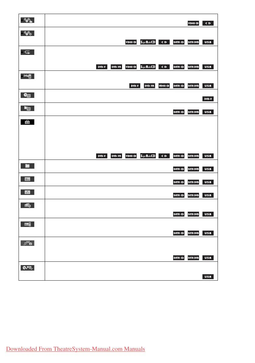 These items are not displayed when playing a DATA CD/DATA DVD/USB device with video files.