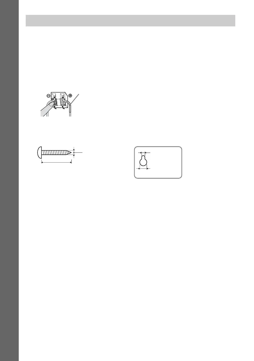 2 Prepare screws (not supplied) that are suitable for the hole on the back of each speaker.