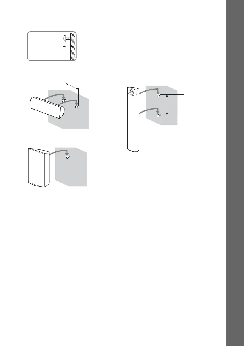 3 Fasten the screws to the wall, then hang the speaker on the wall.