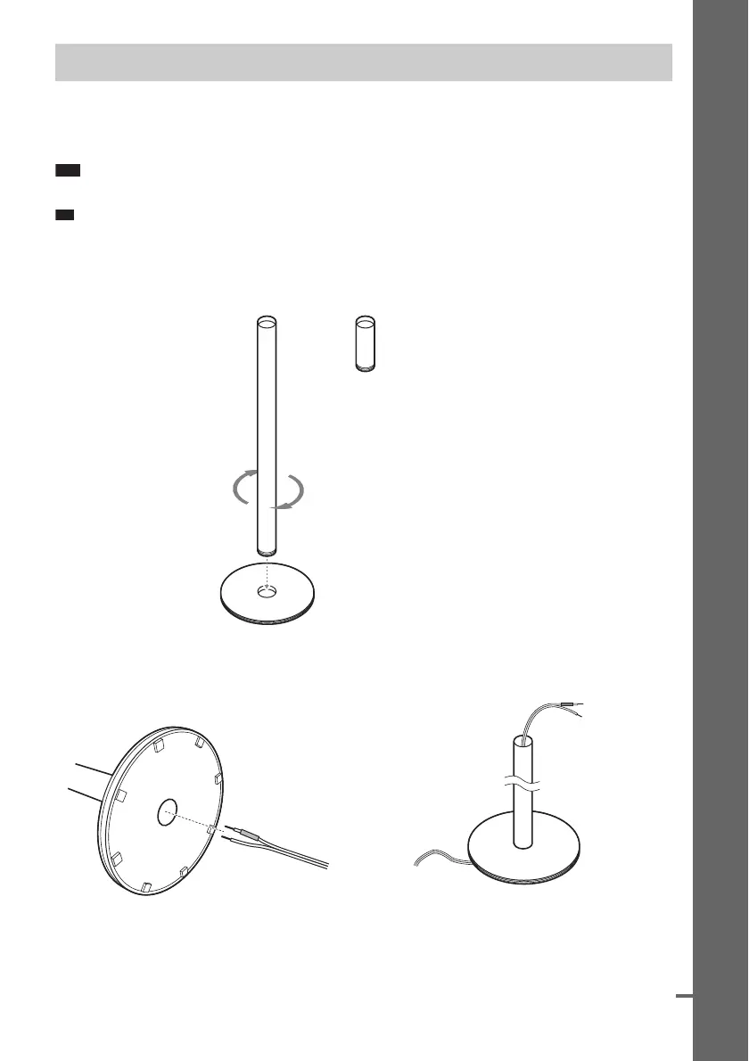 2 Draw the speaker cord through the hole on the base, then stand it up.
