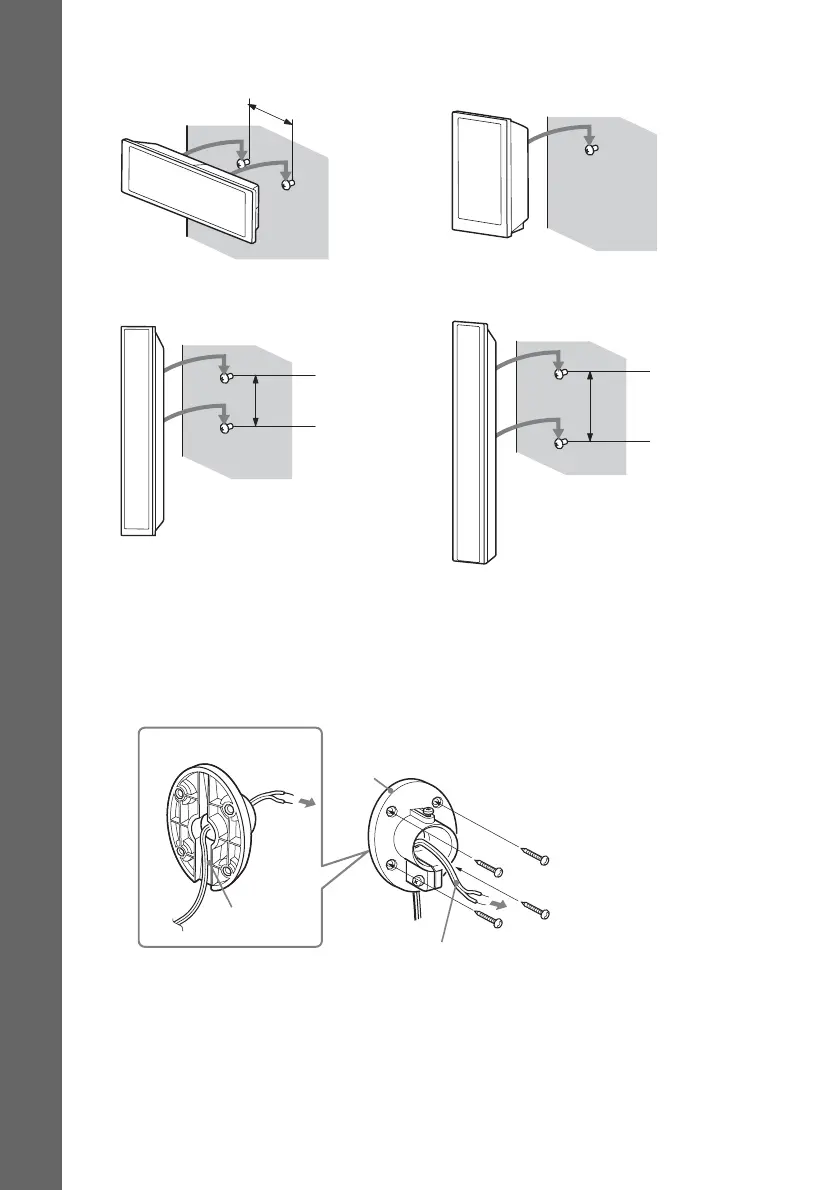 1 Pass the speaker cord through the mounting plate, then attach the mounting plate to the
