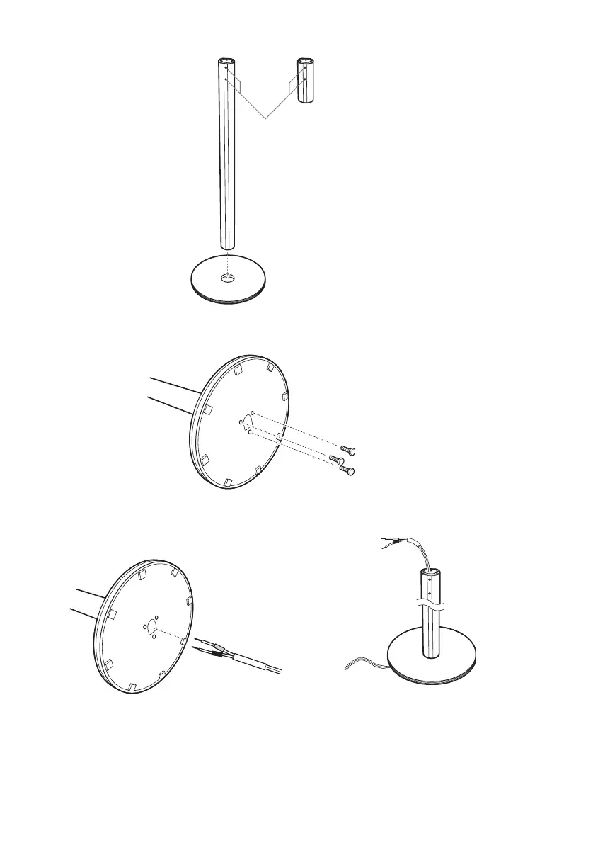 3 Draw the speaker cord through the hole on the base, then stand it up.