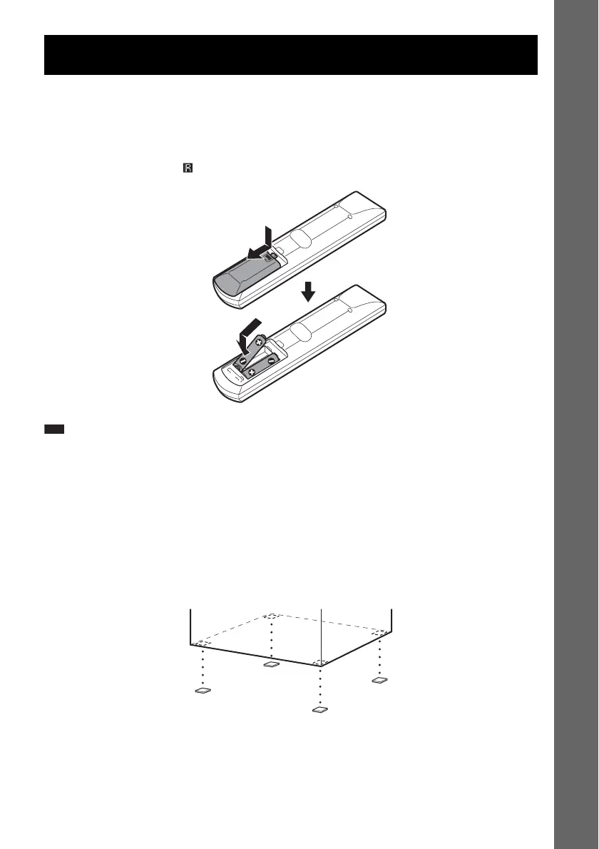 You can control the system using the supplied remote. Insert two R6 (size AA) batteries by matching