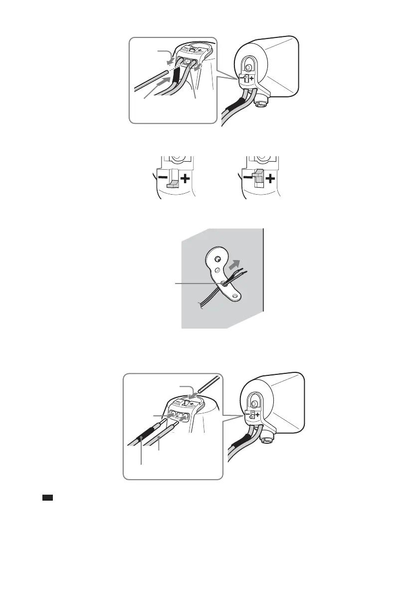 4 Push A with the supplied wrench (1), and then remove the speaker cords (2).