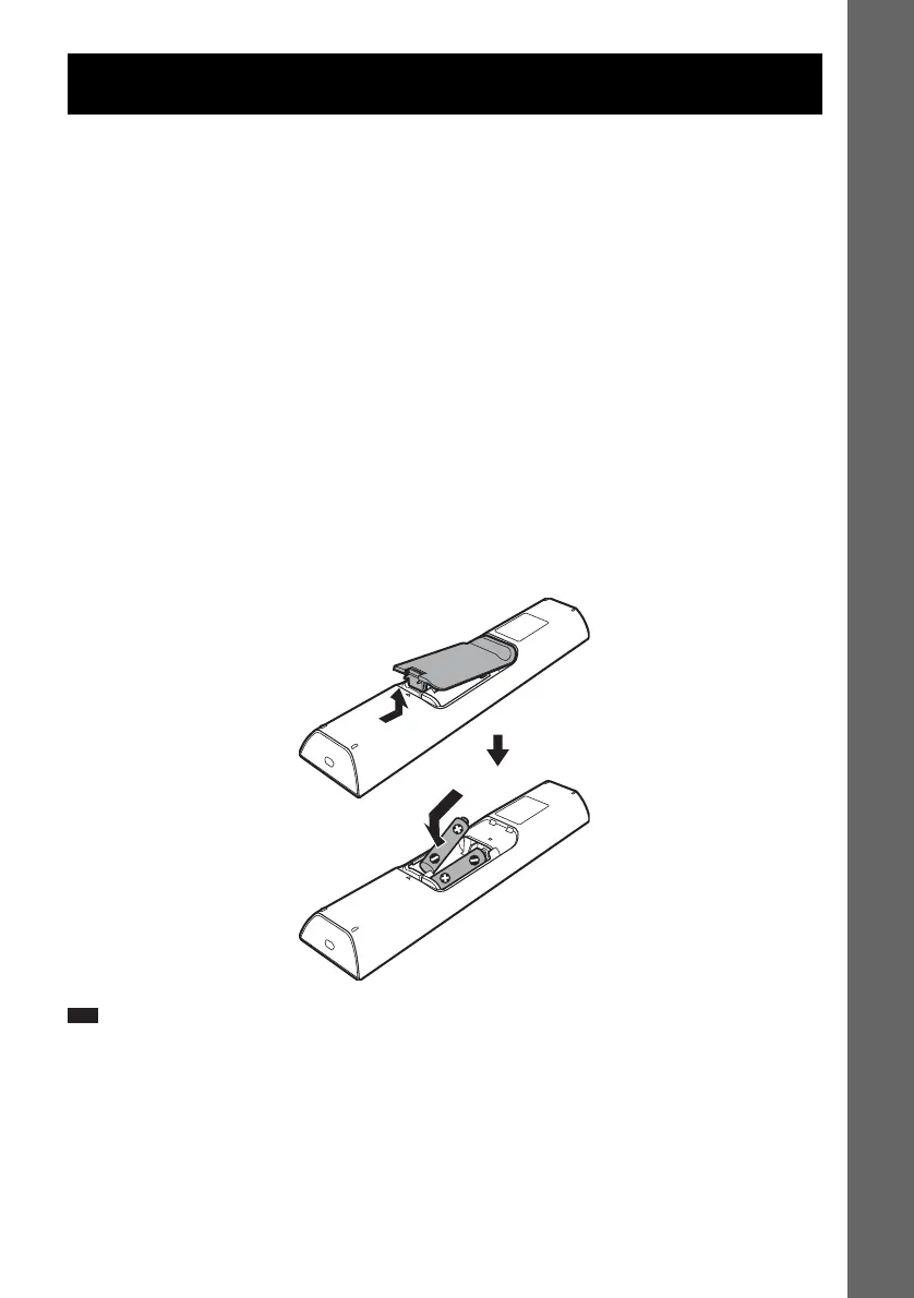 You can control the system using the supplied remote. Insert two R6 (size AA) batteries by matching