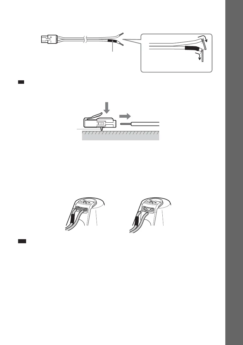 • You can remove the speaker cords from the connector. With the catch facing down, press and hold the connector