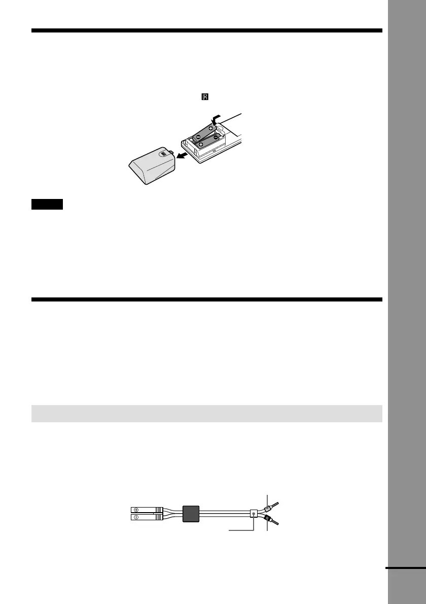You can control the system using the supplied remote. Insert two R6 (size AA) batteries by