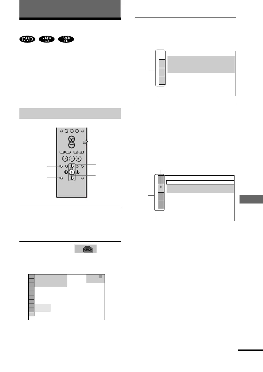 4 Press X/x to select the setup item from