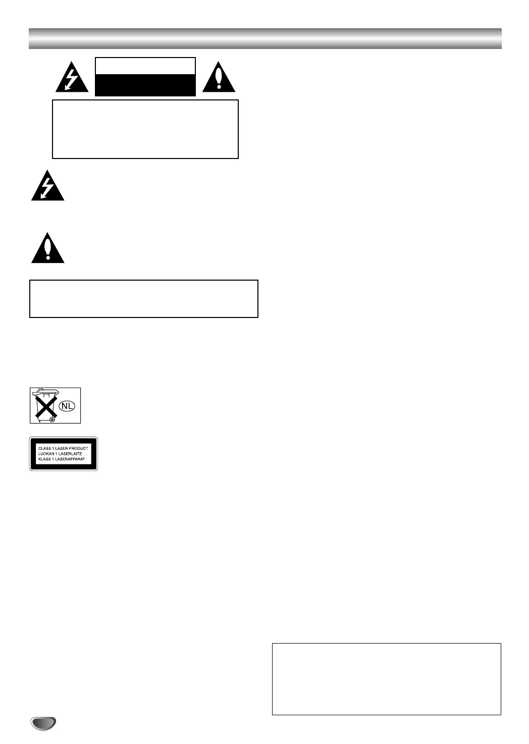 • AC power cord must be changed only at the qualified service