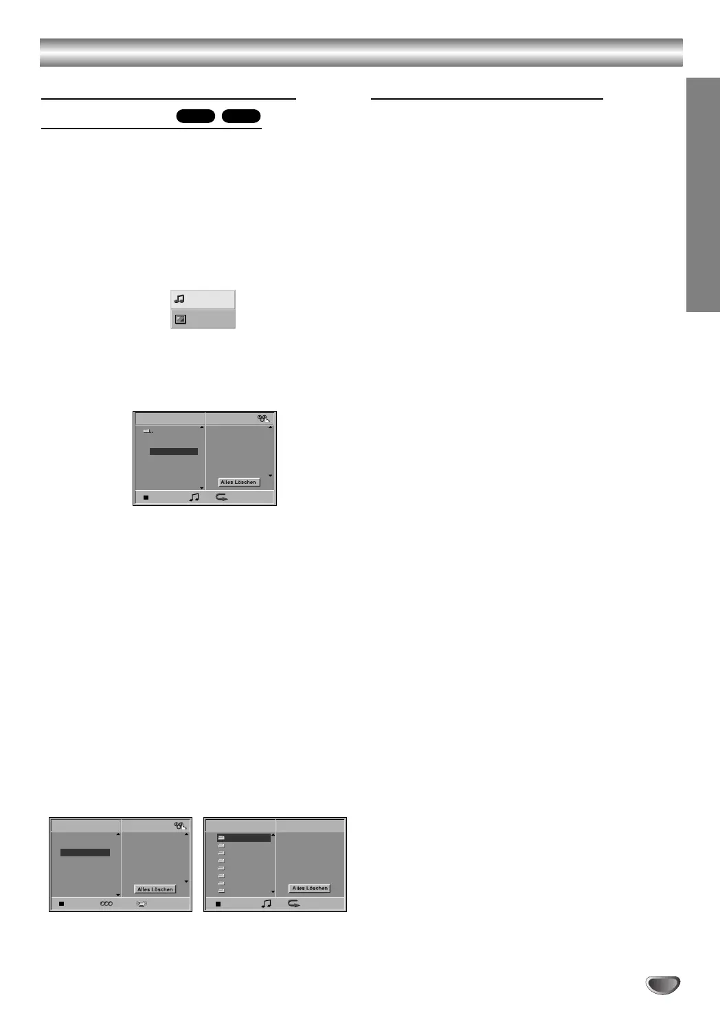 MP3-Disc: Das MP3/JPEG-Auswahlmenü wird