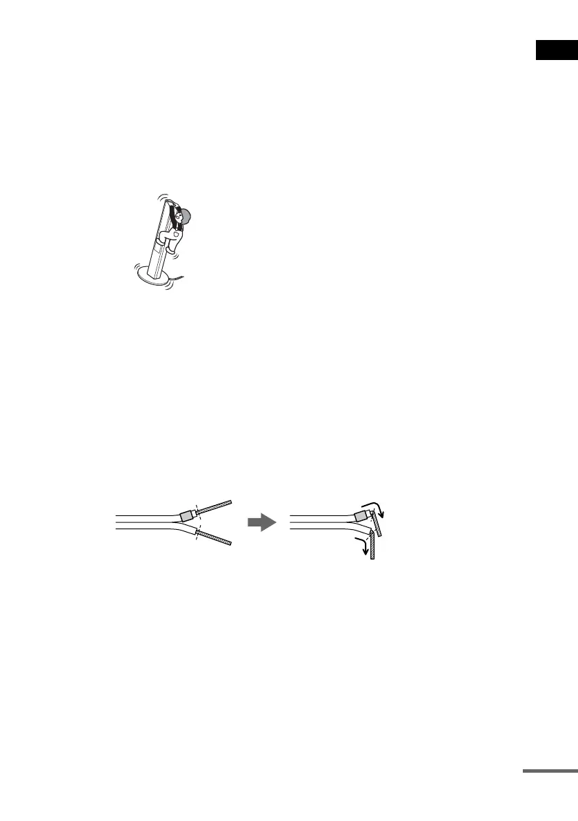 • Do not lean or hang on the speaker, as the speaker may fall down.