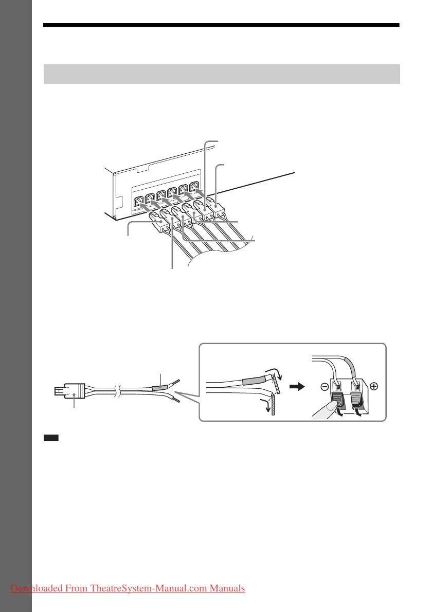 1 Insert the connectors of the speaker cords to match the color of the SPEAKERS jacks