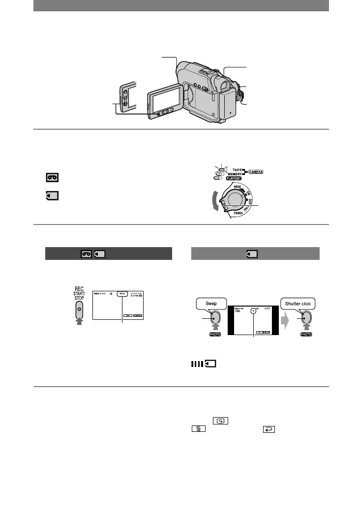 1 Slide the POWER switch in the direction of the arrow repeatedly to turn on