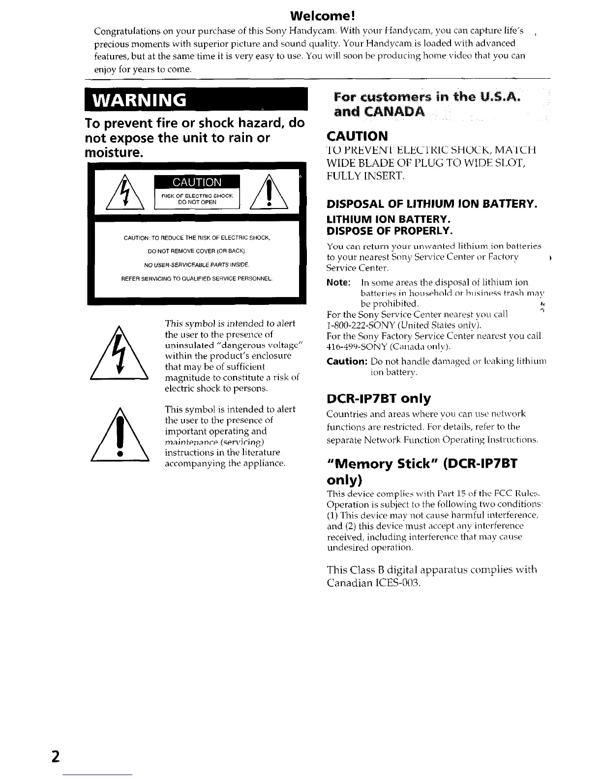 Congratulations on your purchase of this Sony Handycam. With your Handycam, you can capture life’s (