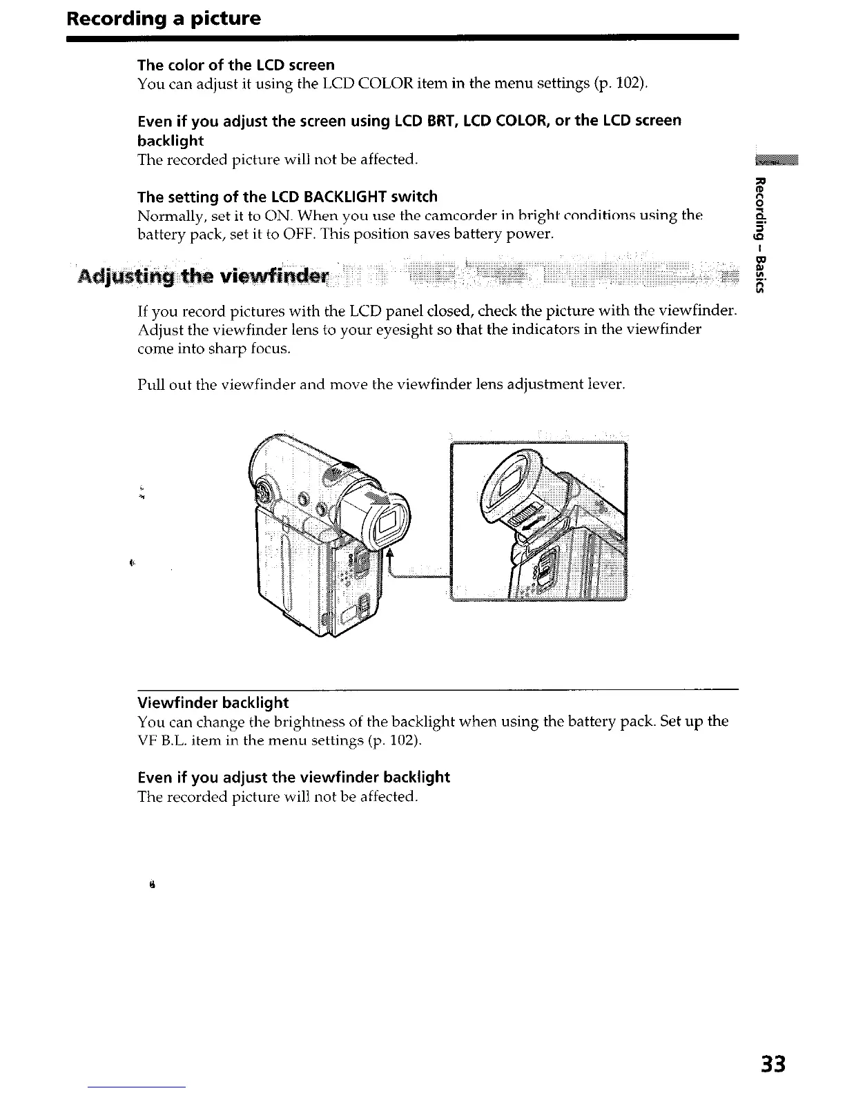 Pull out the viewfinder and move the viewfinder lens adjustment lever.