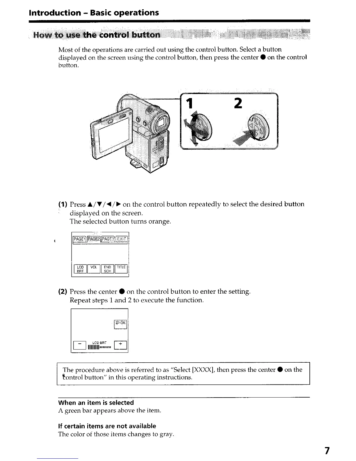 Most of the operations are carried out using the control button. Select a button