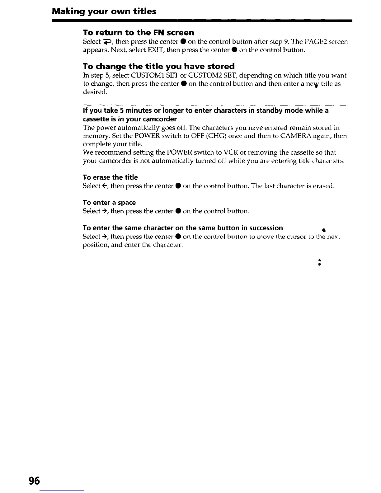 to change, then press the center 0 on the control button and then enter a nev title as