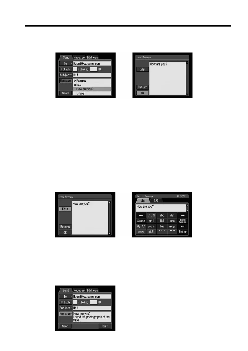 (4) Vérifiez ou modifiez le message. Lorsque le message est long, sélectionnez la