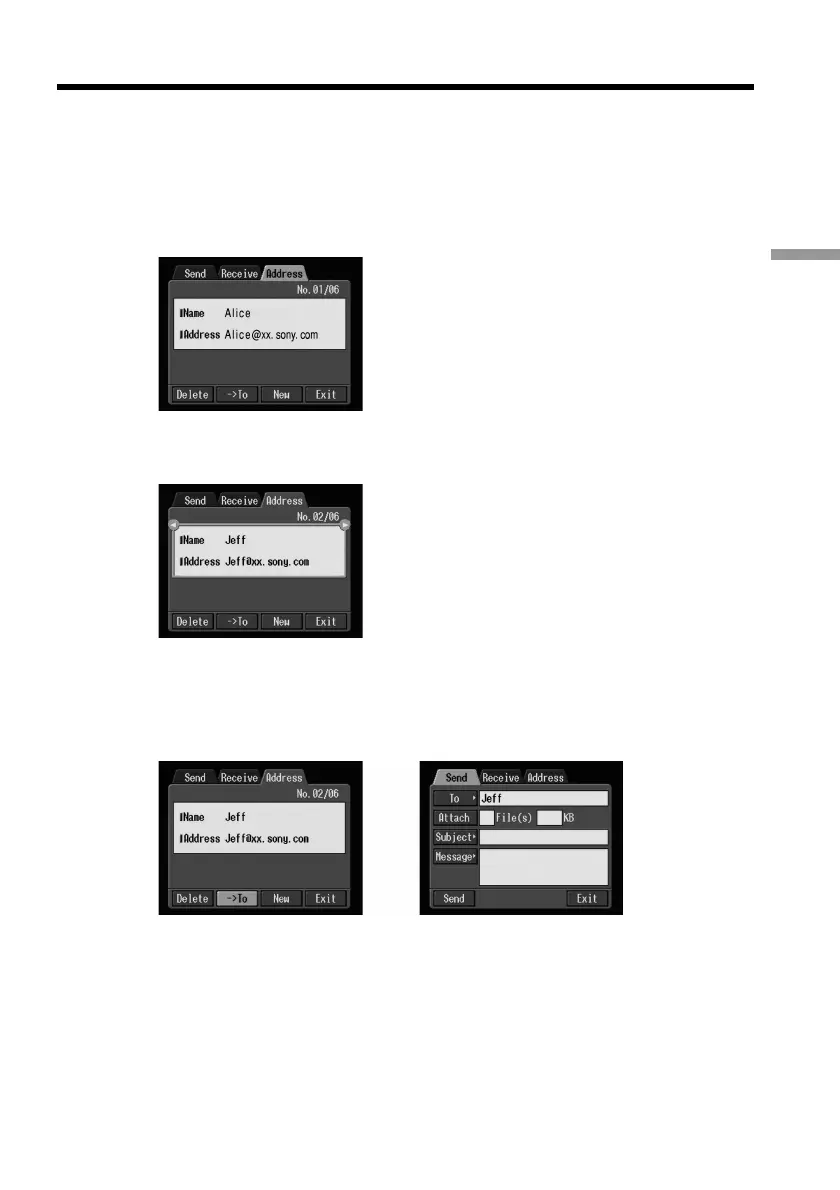 l’adresse de destination à l’aide de b/B sur le bouton de commande.