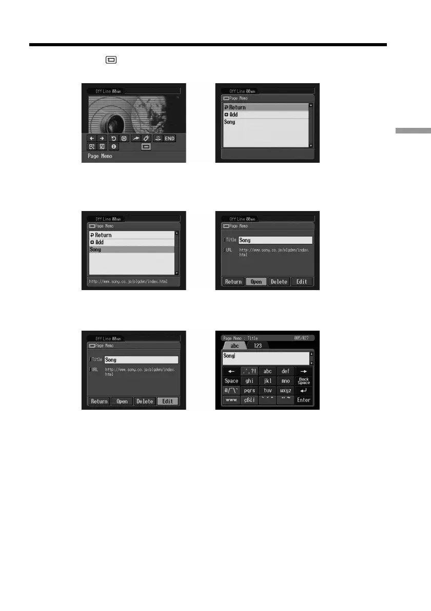 (2) Select the page memo you want to edit, then press the centre z on the control