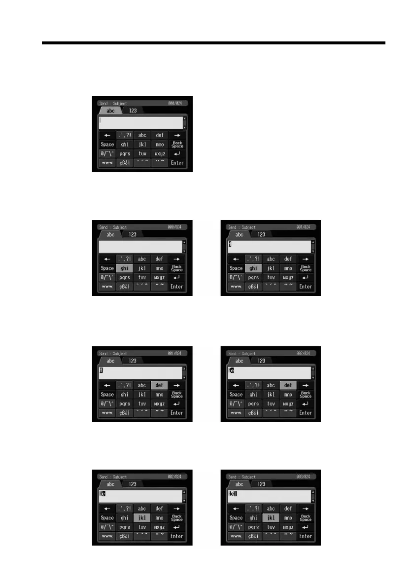 (2) Sélectionnez [ghi], puis appuyez cinq fois sur z au centre du bouton de