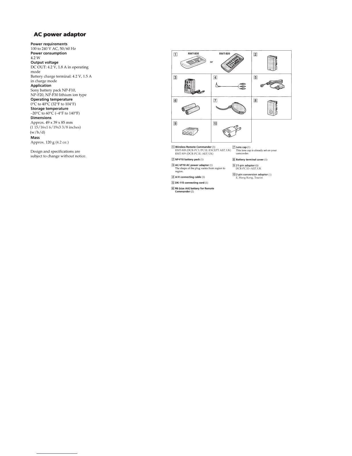 • SUPPLIED ACCESSORIES