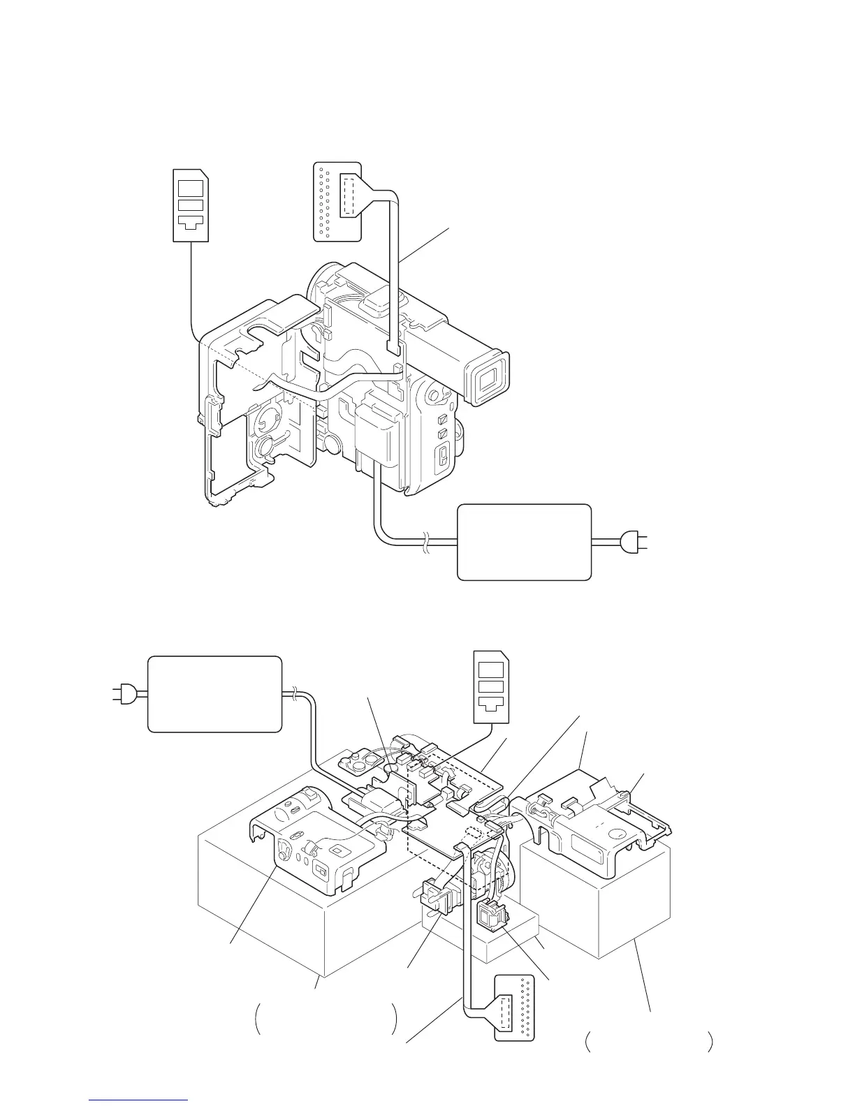 Firstly: Remove the cabinet (R) referring to section 2-1. Then connect the CPC-6 jig, the adjustment remote commander and the AC adapter