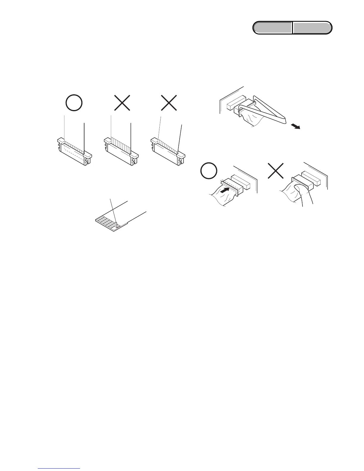 Make sure that the flat cable and flexible board are not cracked of