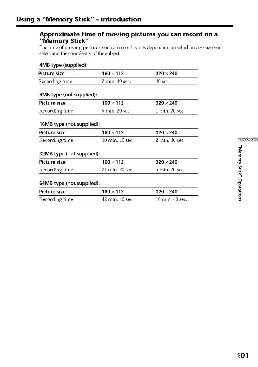 Approximate time of moving pictures you can record on a