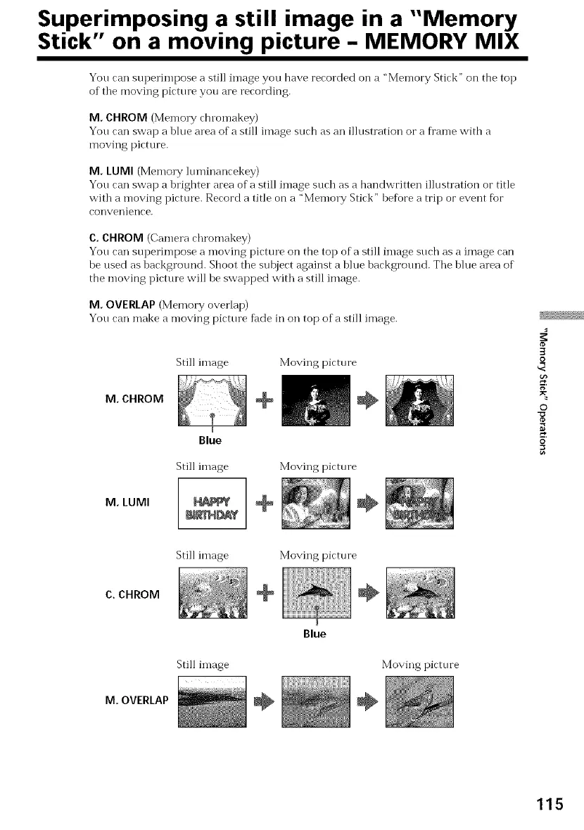Yon can superinlpose a still image you have recorded on a "Memory Stick" on the top
