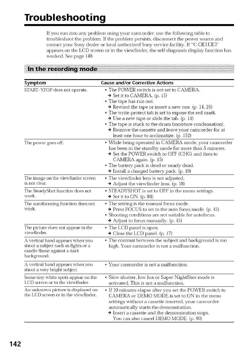If you run into any problem using your camcocder, use the following table to