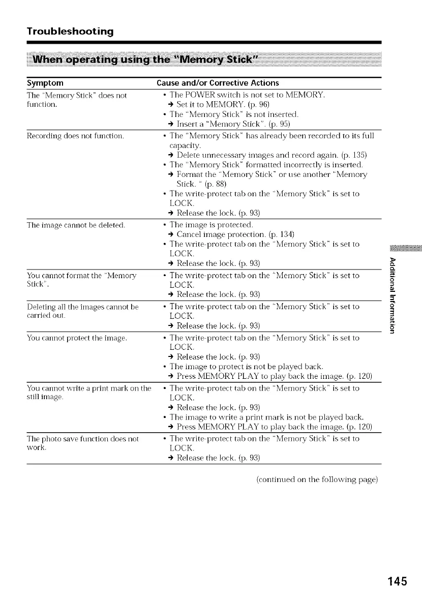 The photo save ftmction does not • The write protect tab on the "Memory Stick" is set to