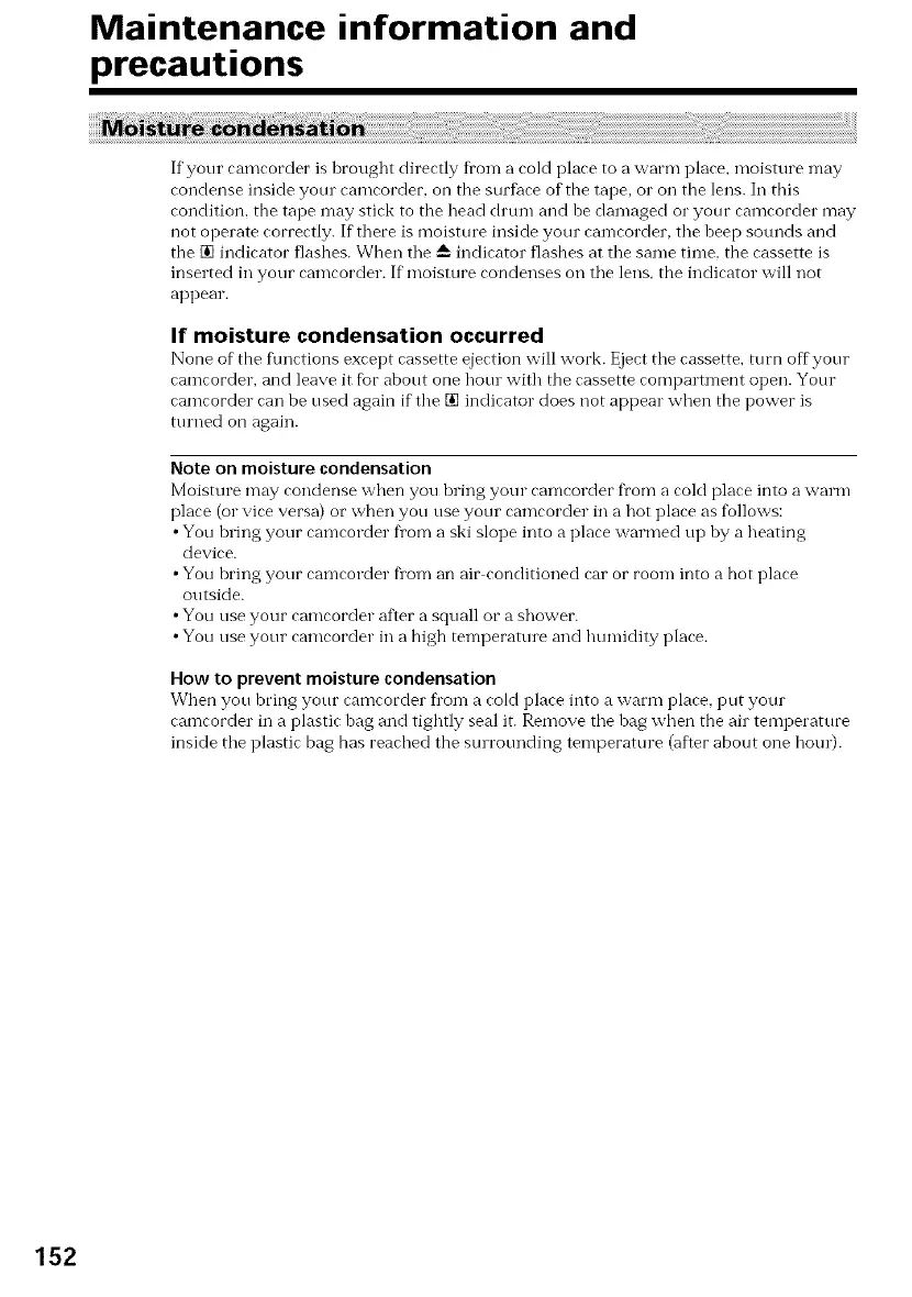 If your camcorder is brought directly from a cold place to a warm place, moisture may