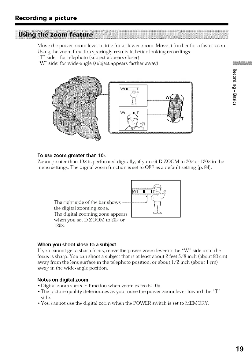 []sing tile zoom flmction sparingly results in better looking recordings.